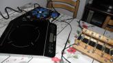 Grâce a des amies j'ai pu faire un petit test du GEGENE, proche de Sophia Antipolis vers 17.00. Teste du bon fonctionnement de la Tristar a 1800w avec une poêle contenant de l'eau. ![]() Impossible de choisir 2000w de puissance car 1800w est le maximum proposé. Les bobines ne fonctionnent pas directement sur la vitre de la plaque. J'avais prévu des petites cales de bois pour faire varier la hauteur, et observer le rendement. Mais seul la disposition directement sur la bobine de litz déclenche l'induction. ![]() ![]() ![]() Charlotte fonctionne bien mais la Woopi n'est pas accepté. Impossible de déclencher la plaque avec elle. Pourtant elle est bien lourde et bien dense. ![]() ![]() Maintenant la mise en oeuvre de la boiboite pour les mesures au luxmètre. Elle fait environ 56 cm de haut. ![]() ![]() ![]() ...et les résultats... C'est bien du 220v 50hz en entrée, pas de problème comme chez Chercheur. ![]() ![]() ![]() ![]() ![]() Voila, au mieux j'ai 9000 lux pour 1764 watts. Cependant les mesures ne sembles pas précises. Pour comparer avec Jean Louis Naudin: http://jnaudin.free.fr/gegene/gegene05.htm ![]() j'ai 9000lux/1764w=5.10lux par watt VS 1829lux/1052w=1.73lux par watt soit environ 3 fois plus, mais ce n'est peur-être pas significatif car les charges sont très différentes. La plaque de récupération n'a pas fonctionné. ![]() ![]() CONCLUSION: La lumière est très forte et ça chauffe comme un feu de cheminée même si la bobine reste froide après 2 minutes de fonctionnement. Les tests avec la boite en carton ne peuvent durées que quelques secondes. Par sécurité j'ai placé 2 miroirs supplémentaires à ses extrémités pour réfléchir la lumière des halogènes. Donc le mieux c'est de faire une boite en bois moins dangereuse. a+ |