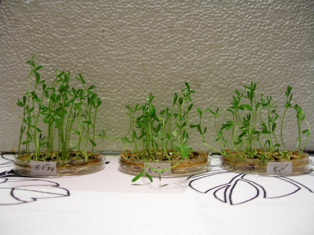Culture: du 23/08/12 au 08/09/12 L'eau Violet a été traitée le 8/08/12 (!! soit 15j avant le premier jour de culture): - 1L durant 1h40 (EV*) - 1L durant 10h (EV**) - 1L sans traitement (EN) Le premier jour > Toutes les graines de EV** sont immergées - sans intervention! A l'inverse de EV* et EN ou un grand nombre flottent en surface. Les jours suivants: l'eau est nettement plus brunâtre et un dépôt se forme sur EV** 3j plus tard, EN présente 13 germes, EV* 23 germes et EV** seulement 4 germes. Démarrage plus lent pour EV** et nettement plus rapide pour EV*. Le 3/09 après 10j, EV** a rattrapé le retard et présente le plus de pousses au-dessus de 4cm (de g. à dr. EN-EV**-EV*): ![]() Le 5/09, voici le résultat (EV** - EV* - EN). Et ici, on observe bien un phénomène très marqué tout au long de la culture: l'allure très rectiligne et dirigée vers la lumière de EV** par rapport aux deux autres, qui sont plus tortueux et parfois encore à la recherche de la lumière - si l'on peut traduire cela de cette façon. ![]() Le 8/09 jour de l'arrêt du test: ![]() Puis la planche qui reprend chaque plant isolé, avec 3 catégories: en haut les plants supérieurs ou égaux à 10cm, au centre les 8<10 et en dessous les <8cm de tige. Ici le lot EN eau normale - système radiculaire très limité, malgré une germination et une pousse correctes: ![]() Ici le lot EV*, avec des racines très au dessus de celles de l'EN, mais une pousse un peu en-deça de l'eau normale: ![]() Ici le lot EV**, avec des racines et des tiges qui ont dépassés largement les 2 autres lots - y a pas photo! ![]() Les statistiques finales ![]() Que peut-on en dire? > L'Eau Violet agit efficacement encore après 15j au repos > L'Eau Violet même faiblement traitée agit > Malgré une réaction à la germination plus efficace et une pousse des racines très marquée, l'Eau Violet faiblement dynamisée n'a pas tenu les mêmes tendances à la croissance des tiges - elles terminent sous la moyenne de l'eau normale > L'Eau Violet fortement dynamisée a bien fait exploser les stats avec des tiges 33% supérieures dans la totalité et des racines 95% supérieures à l'eau normale! > Mais la germination a été sensiblement plus lente pour l'Eau Violet forte > L'allure des plants est nettement différente comme déjà dit auparavant en Eau Violet forte: rectiligne, plus robuste et tendu vers la lumière > L'immersion complète de toutes les graines peut indiquer une tension superficielle de l'Eau Violet forte moins importante > Consommation d'eau du lot Eau Violet forte plus importante que les deux autres > Ecart-type plus petit en Eau Violet forte, signe d'une plus grande homogénéité également Je n'ai pas procédé à une mesure du poids par manque d'instrument de mesure valable. Il faut évidement refaire ce test pour confirmer encore les choses et peut-être cerner d'autres détails, mais je pense que les chiffres parlent d'eux-mêmes. Je précise que les lots ont été placés aux mêmes endroits, que j'ai parfois interverti les emplacements sur l'appui de fenêtre côté sud pour qu'ils aient les mêmes conditions de lumière, les 3 litres d'eau étaient stockés dans 3 bouteilles de verre toujours abrités de la lumière dans des boites en carton individuelles. Les conditions de température étaient identiques et les approvisionnements en eau étaient dosés par éprouvettes graduées séparées pour garantir les mêmes quantités. Je publie des graphes dans le message suivant. -------------------- Restez curieux et découvrez!