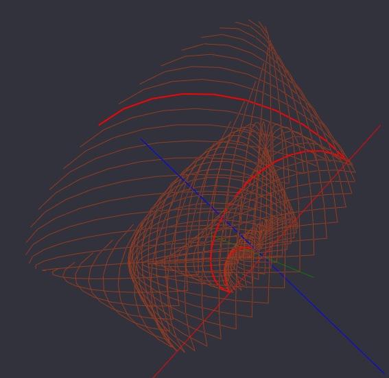 Je recommence : Alors, la question était la longueur des segments ; mais je crois avoir compris Tu as 36 rayons donc 36 droites décalées de 10° Tu as dessiné plus de 36 cercles, car si tu avais dessiné 36 cercles la spirale s'arrêterai sur l'axe rouge, elle n'aurait fait que 360° Donc si je comprends bien le rayon de chaque cercle est augmenté de phi Donc voilà la réponse à ma question : les longueurs des segments sont multiples de phi Donc tu traces ça sur l'axe x et y, mais tu fais la même chose pour l'axe z : ainsi tu représentes ta figure dans 3 dimensions Bon, ai-je raison ? Maintenant pourquoi 10° et pourquoi phi ? (en sachant que phi donne l'ouverture de la spirale) Il y a une chose qui m'échappe là ! On n'est pas là pour justement tout faire connaître, il faut cacher des choses ? |